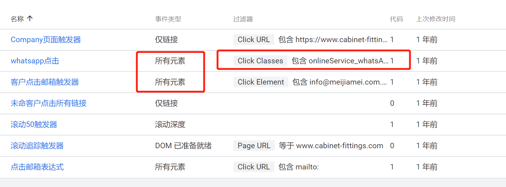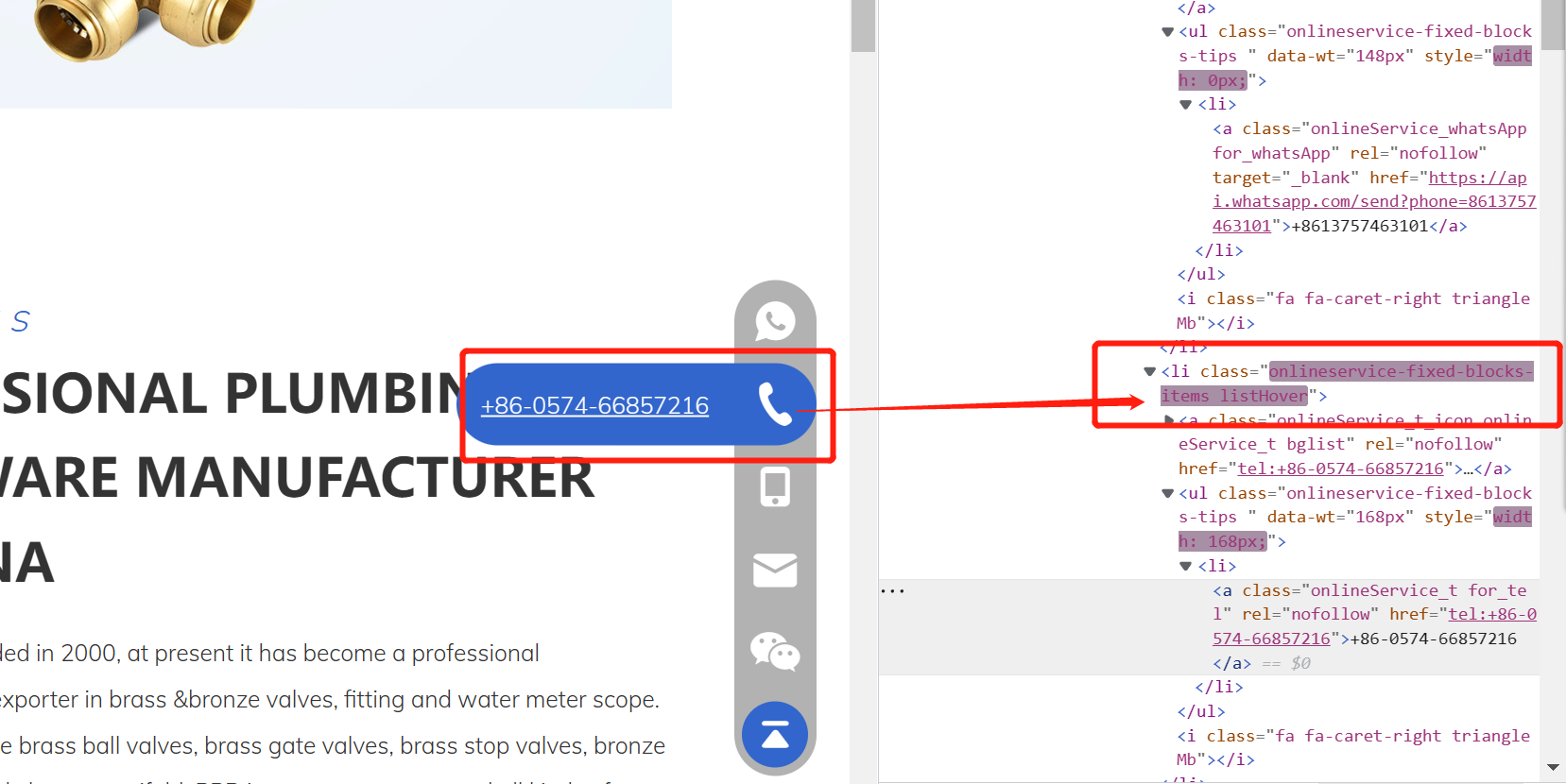 通过F12打开开发者工具,找到对应的快速联系组件代码中的class=之后的字段,复制到GTM的追踪事件中